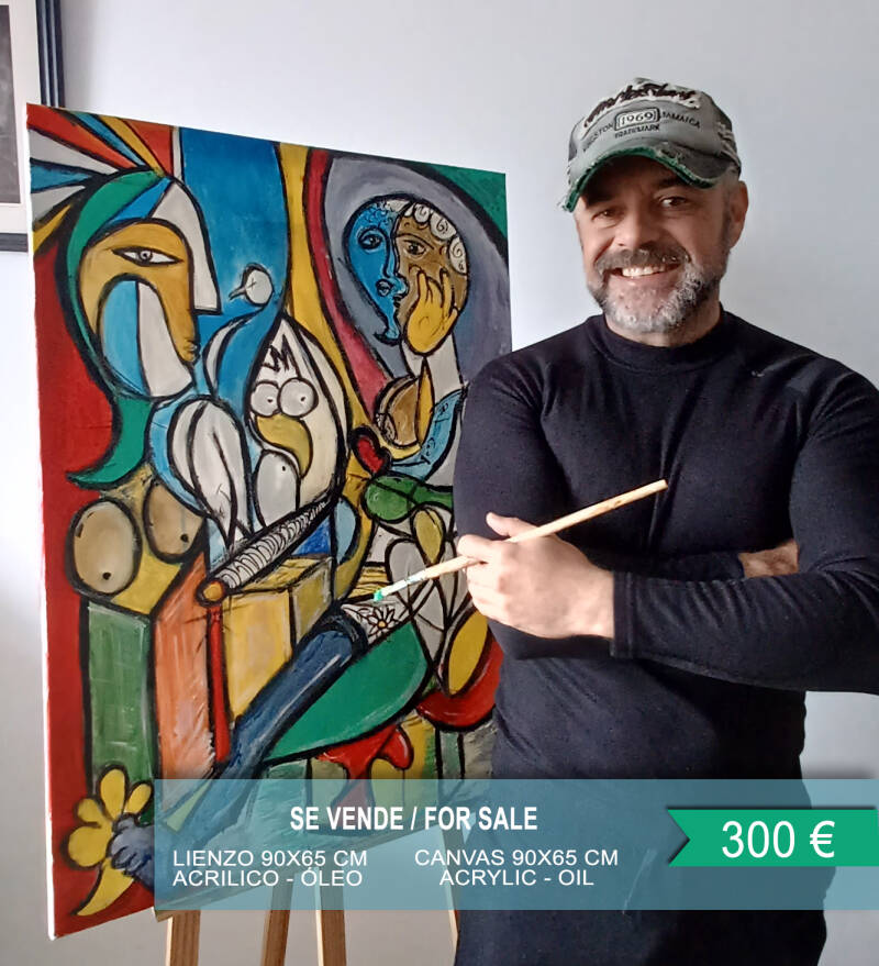 Este lienzo en particular está inspirado en uno de los cuadros más emblemáticos del maestro Picasso. Como artista, siempre he sentido una profunda admiración por la obra y la creatividad de Picasso, y quise rendirle un pequeño homenaje a través de mi propio trabajo.
